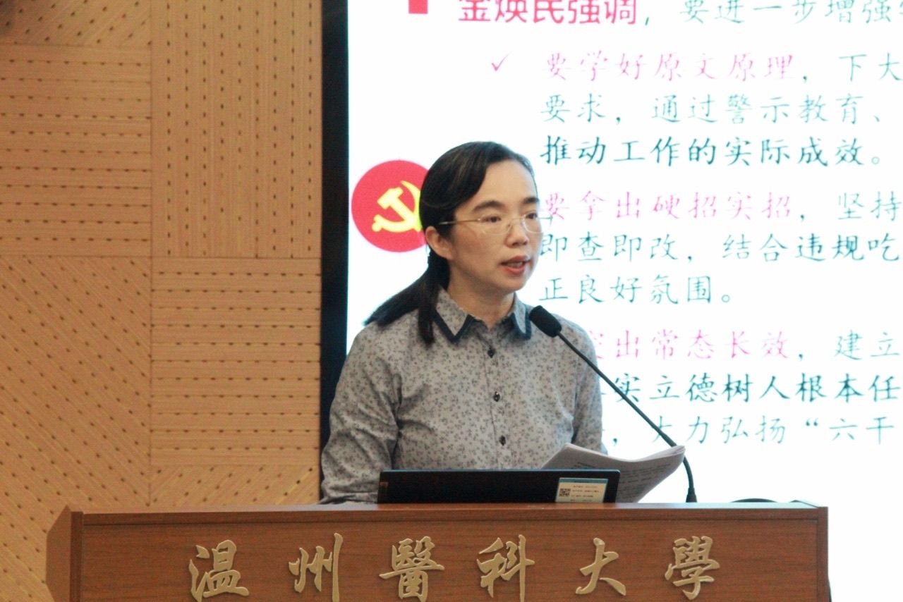 随后,章艳乐开展师德师风警示教育,重点部署了近期教学工作。她要求全院教师要严格按照学校本科教育教学审核评估工作的要求,保证材料的完整性、准确性和规范性。章艳乐强调,本学期学院教学工作稳步推进,优秀成果的取得离不开全院教职工的共同努力和付出,但要正视不足之处,及时分析原因、总结经验,为下一步工作奠定基础。她希望,全院教师凝心聚力、笃行实干,不断提升教育教学水平,为推动学院发展迈上新台阶持续奋斗。