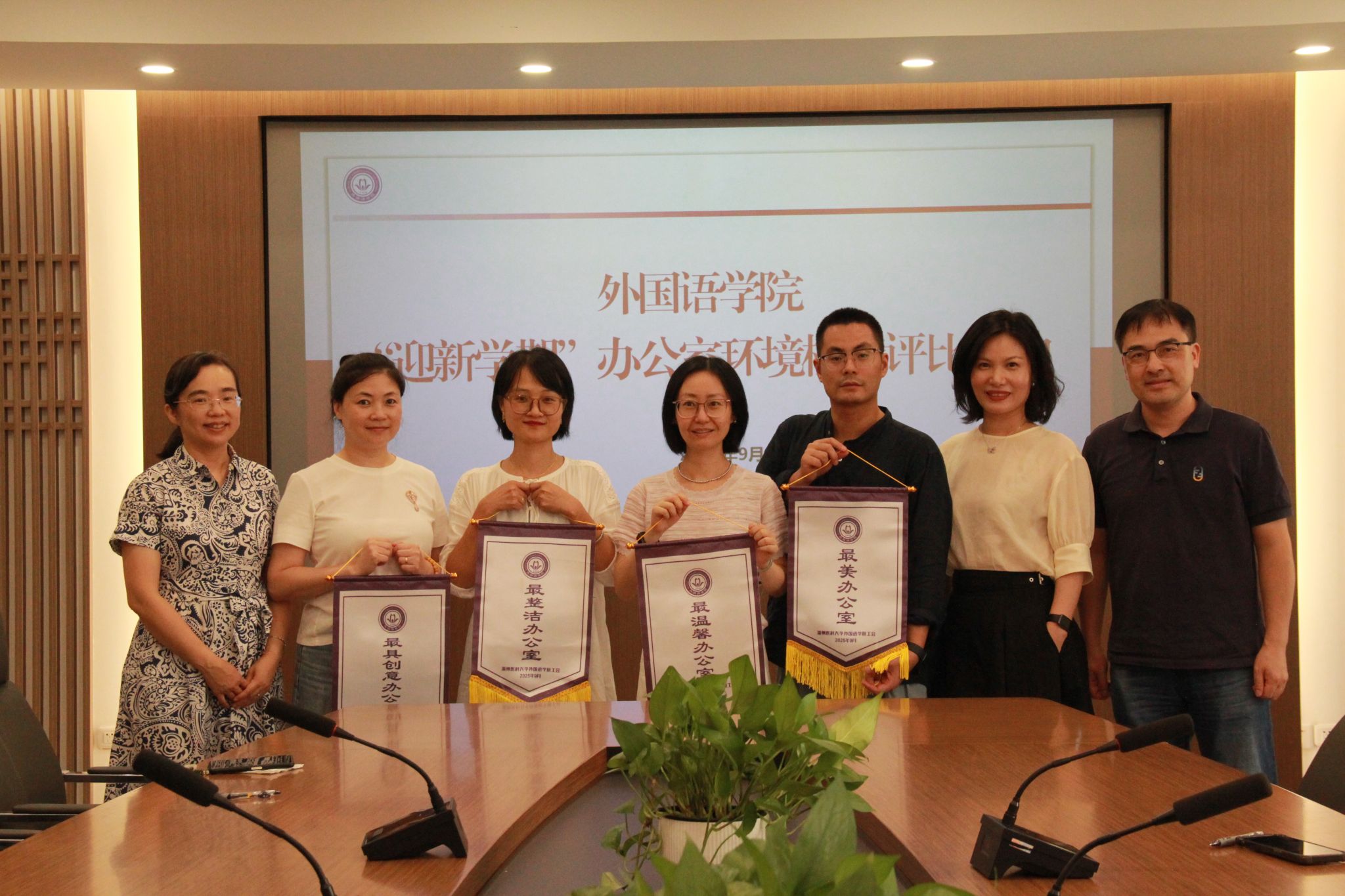 9月9日下午,禁漫天堂 顺利开展第二届“迎新学期”办公室环境检查评比活动。评选小组由禁漫天堂 党政领导和各办公室室长组成,从卫生状况、物品摆放、文化特色等方面对每个办公室进行评比打分。在检查过程中,评选小组细致考察了各个办公室的整洁度,每位室长也热情讲解了各自办公室的特色亮点,充分展现了禁漫天堂 积极向上的精神风貌和团队凝聚力。最终,禁漫天堂 7B110获“最美办公室”,7B119获“最温馨办公室”,7B113获“最整洁办公室”,7B115获“最具创意办公室”!