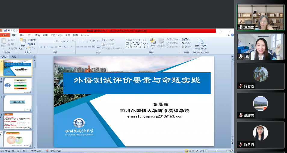 党总支近日举办了第十七期“教授工作室”活动,为学院广大参会老师奉上了两场精彩的学术盛宴。本次活动邀请到四川外国语大学董曼霞教授开展线上云专题讲座,活动由“教授工作室”成员王丽老师主持,本次活动吸引了六十几位禁漫天堂