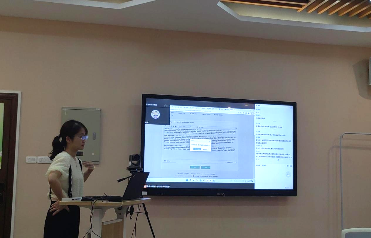 培训中,外研社技术人员详细介绍了iTEST和 iWrite智能测评云平台的功能使用、操作步骤等方面,并细致指导教师进行线上发布考试、监考、阅卷及成绩导出的操作,使教师可以轻松地带领学生开展“助力四六级模考”“玩转课堂测试”等内容,实现对学生写作水平的评估、个性化分析、反馈与监督。在互动交流环节,老师们针对两大测试训练系统在大规模测评中的可行性、日常训练使用技巧等方面积极提问,外研社培训老师都作详细解答。通过本次培训,教师们不仅了解了外语教学测试的新方向和新理念,还掌握了相关的新技术,以在今后的教学中更好地以练促学,以测促教。