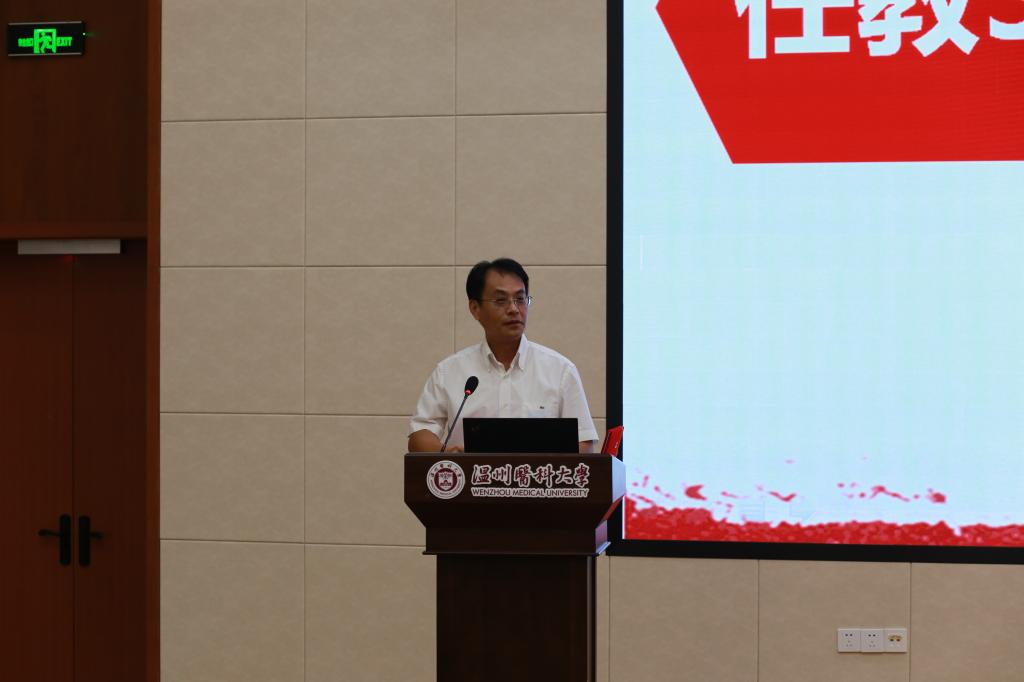 最后,柯奔作总结讲话,激励全体教师共同努力,持续奋进,他提出三点要求与全体教师共勉:一要坚持立德树人,不断涵养铸魂育人的坚定使命,做“经师”和“人师”的统一者,争做“四金”的探索者;二要坚持德高身正,不断厚植高尚师德文化,传承温医大优良的师风;三要坚持本领担当,不断提高教书育人的能力,主动迎接教育改革发展挑战,科学规划教学生涯。