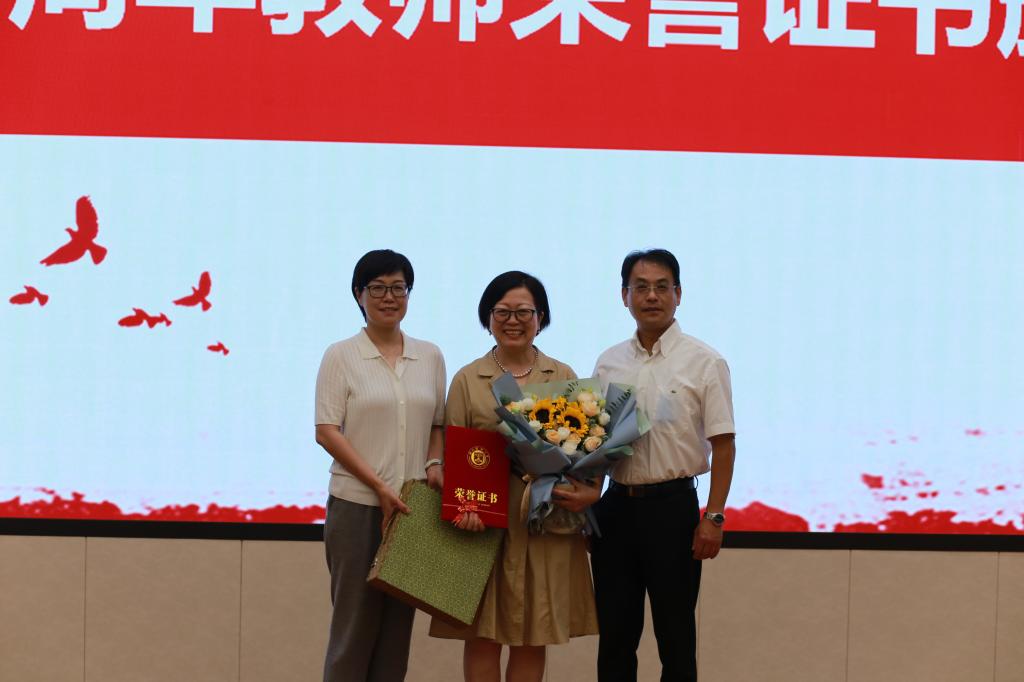 时值第38个教师节来临之际,学院为全体教师送上鲜花,提前送上节日祝福。今年教师节的主题为“迎接党的二十大,培根铸魂育新人”,为激励教师切实担当为党育人、为国育才的光荣使命,学院受学校委托为荣获“浙江省人文社科领军人才”刘婵娟举行了慰问仪式,同时为任教满30周年教师李莹莹举行荣誉证书颁发仪式。李莹莹结合自身工作经历分享了从教三十年的工作心得,她坚守教育初心,潜心立德树人,在教学岗位上积极传递正能量,实现自己的教育理想,成就美好的教育生涯。