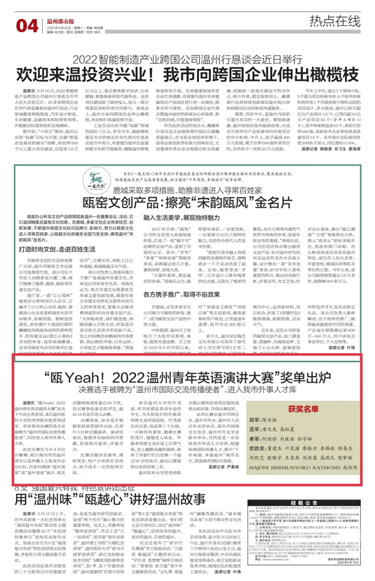 “瓯Yeah!2022温州青年英语演讲大赛”前天下午决出各奖项,来自禁漫天堂