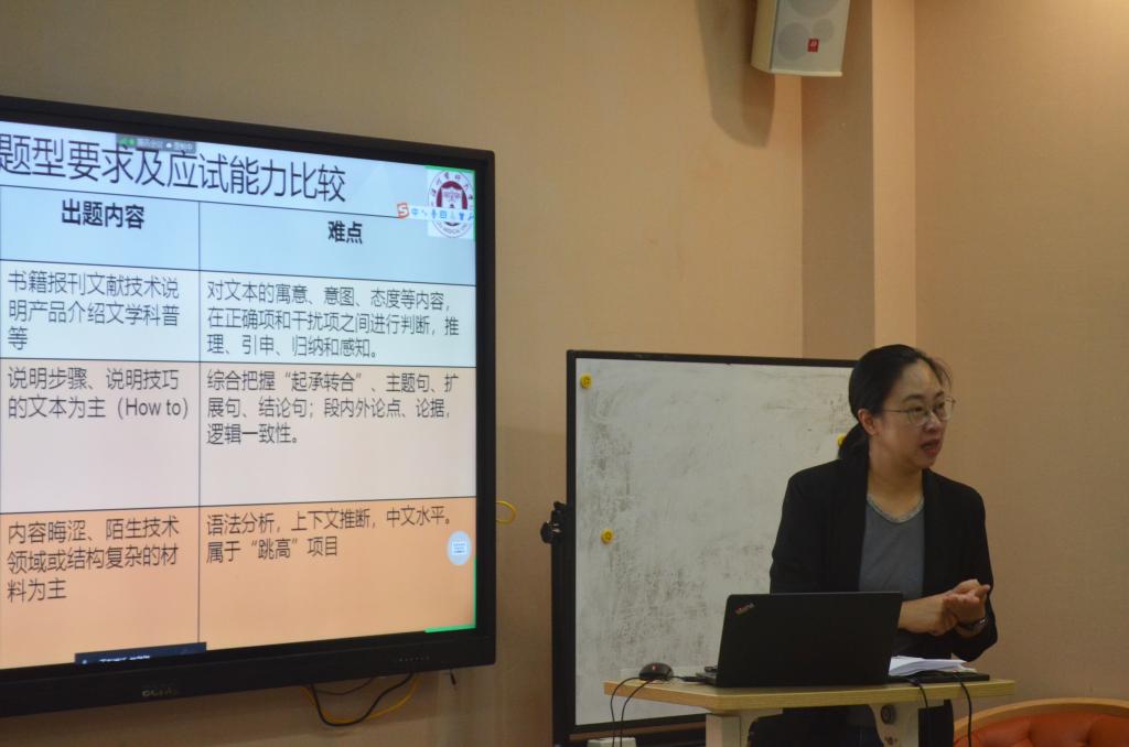 林甜甜从考纲入手向同学们介绍了考研英语不同题型的特点,针对分数占比非常高的阅读模块,她进行了详细的分析并给出行之有效的建议。她强调,考研英语阅读主要考察学生是否掌握常识或逻辑推理、语法手段、词汇衔接和逻辑连接等能力,不同部分考察能力的内容不同,比如A节考察考生整体和微观阅读行为等,并以真题为例帮助同学们加深对考研英语阅读各部分的理解,另外,针对每一类题目她都给出了相应的解题技巧和策略。在“读后翻译题”模块,林甜甜总结了近几年翻译题的题源,并建议同学们从“听说读写译”五方面夯实基础,一步一步提高自己的词汇理解能力、语法分析能力、逻辑判断能力和中文表达能力。