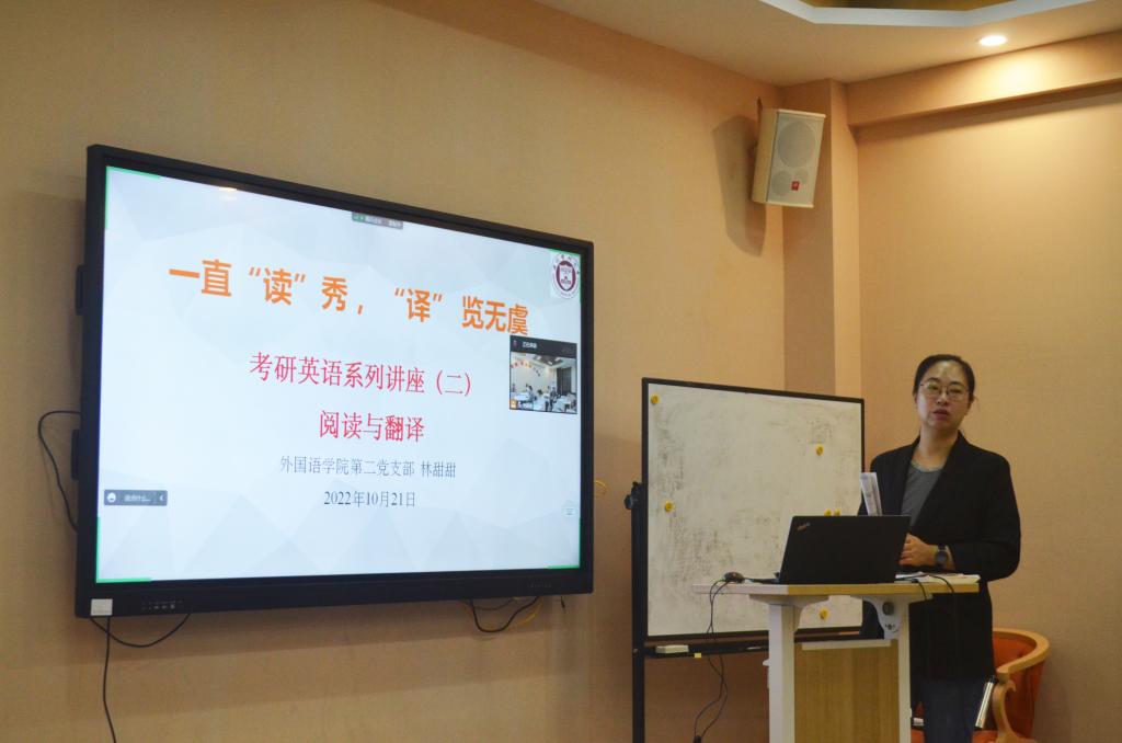 教师林甜甜主讲,以《一直“读”秀,“译”览无虞》为题,内容包含阅读和翻译两大模块。