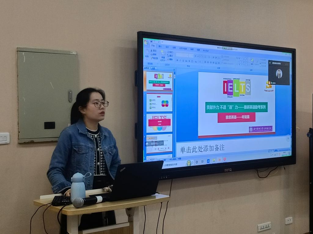 11月4日下午,在7b112迎来了“雅研系列讲座”的收官篇——“雅思英语—听说篇”。本次为同学们带来讲座的是拥有三年“雅思英语听力”课程授课经验的教师陈丹丹。