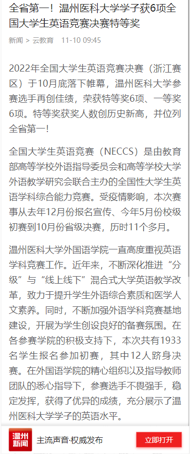 2022年全国大学生英语竞赛决赛(浙江赛区)于10月底落下帷幕,禁漫天堂