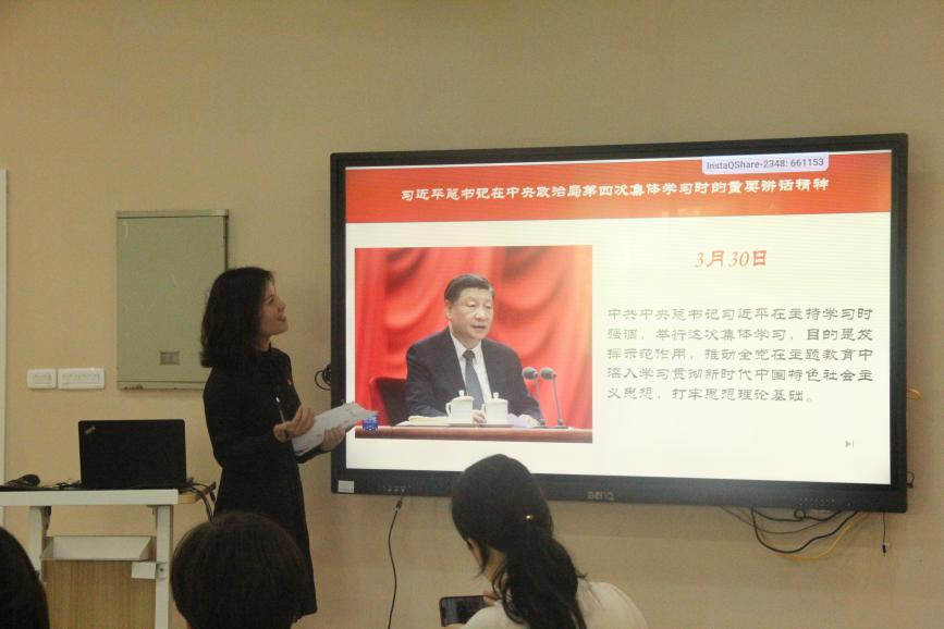 外语技能中心开展月度理论学习会暨教改讨论会,会议由第一党支部书记章艳乐主持。本次会议共有三项议程:习近平新时代中国特色社会主义思想理论学习、大学英语混合式教学改革专题讨论、党建与教改融合。