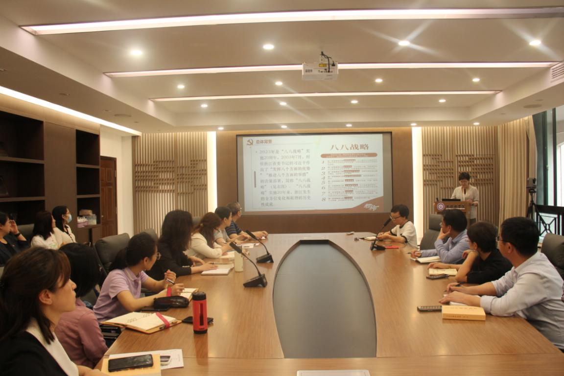 刘婵娟以“忠实践行“八八战略”二十周年 读《习近平在浙江》有感”为题作专题讲座,详细介绍了《习近平在浙江》的重点内容。她强调,我们要牢牢抓住贯穿其始终的主旨主线,深刻领会和把握其核心要义,切实传承好运用好习近平同志在浙江工作时创造的宝贵思想财富、精神财富和实践成果。刘婵娟要求党员教师要自觉扛起“三个地”的使命担当,把学习《习近平在浙江》采访实录和学习贯彻习近平总书记对浙江工作的重要讲话重要指示批示精神结合起来,切实增强“四个意识”,始终坚定“四个自信”,坚决做到“两个维护”,为忠实践行“八八战略”、奋力打造“重要窗口”、争创“双一流”高校谱写精彩新篇章。