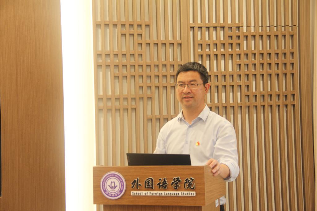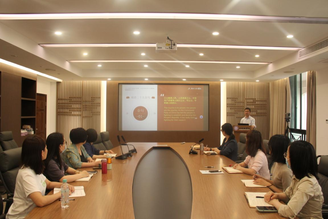 戴建春作题为“坚定文化自信 学习对外翻译 做好国际传播——学习贯彻党的二十大精神的心得”的专题讲座。他强调,坚定文化自信,事关国运兴衰、事关文化安全、事关民族精神独立性。中华优秀传统文化积淀着中华民族最深层的精神追求,包含着中华民族最根本的精神基因。就如何做好国际传播,他表示一要加快构建中国话语和中国叙事体系,二要广泛宣介中国主张、中国智慧、中国方案,三要深入开展各种形式的人文交流活动,四要全面提升国际传播效能。戴建春分享了国内优秀翻译工作者的事迹鼓励党员教师提高专业能力,助力讲好中国故事。