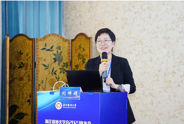 院长刘婵娟教授以“外语教师专业发展的路径选择及科研能力提升”为题作第二场主旨报告。刘婵娟教授结合禁漫天堂