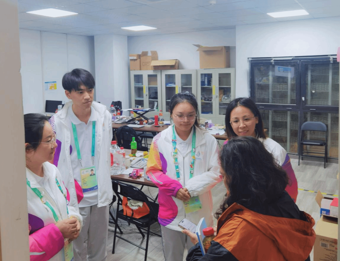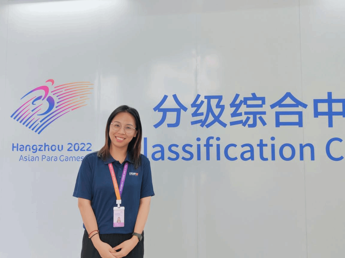 教师李小燕于今年七月份选调担任分级综合中心信息组工作人员参与亚残运会赛前分级评估相关工作。残疾人体育分级为残疾人竞技体育提供了一个公平竞争的平台,是确定运动员有资格参加比赛,并根据运动员损伤对活动受限的影响程度将他们分配至由重到轻、程度不同的级别体系中的过程,这是残疾人运动会必须进行的程序,李小燕老师主要承担分级中心的翻译工作与外宾接待工作。