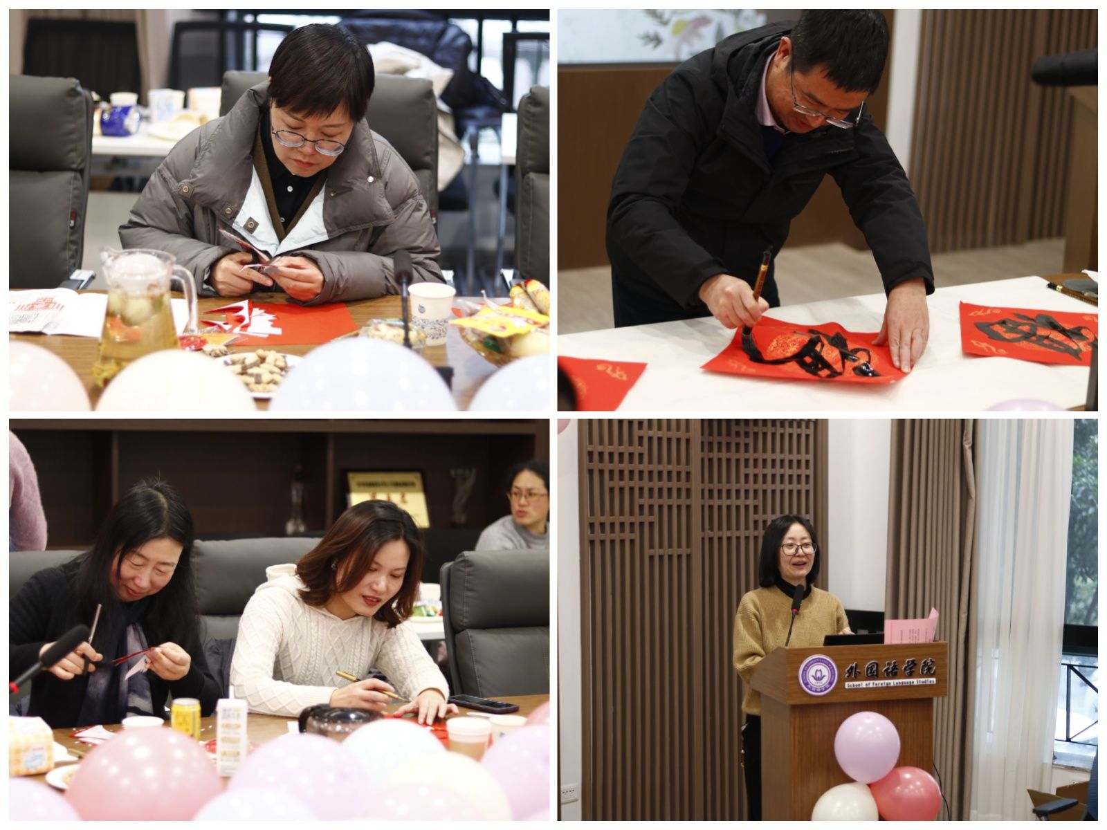 举行了“相约冬至 情暖外院”茶话会——“翰墨飘香”中国传统文化学习体验活动。余嫦嫦向在座的老师介绍了中国剪纸的种类和书法的注意事项,学院教师用笔墨纸砚和刻刀留下了属于这个季节的温情和浪漫,并将作品送给了两位荣休教授,感谢她们对自己的工作的帮助与提点,感谢她们对自己的悉心关照。大家品味着香茗与美食,剪纸、春联、书法、毛笔、金色秀丽笔等传统文化体验活动让大家感受到了中国传统文化的博大精深和无穷魅力,欢声笑语中,冬日暖暖的温情在每一位教职员工的心间流淌
