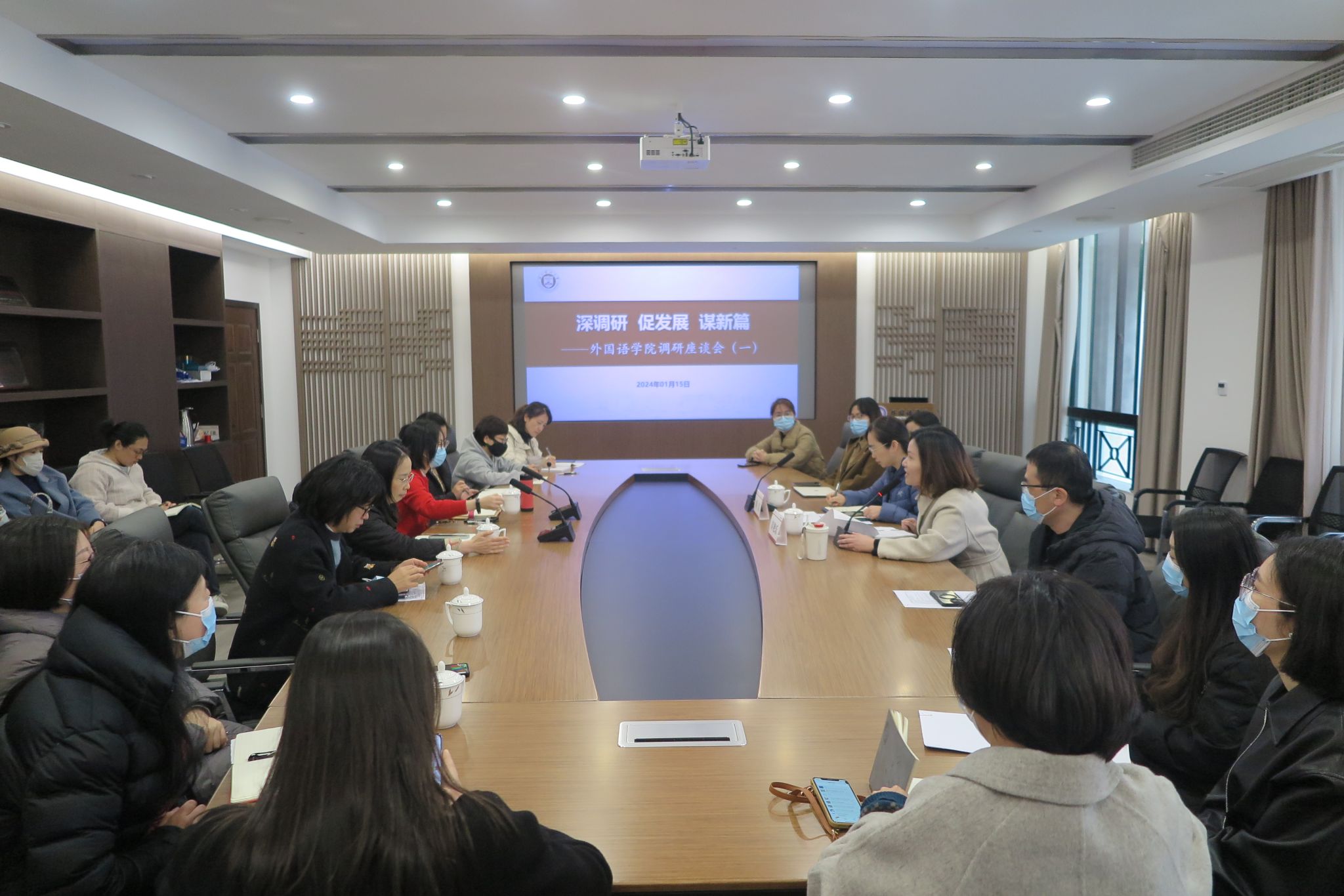 在7B104会议室先后召开领导班子与英语教研管理干部、日语教研管理干部调研座谈会。学院党委书记刘洁、副院长章艳乐出席会议,学院科级干部、系部主任、教研室主任和教学秘书参会。会议由副院长章艳乐主持。