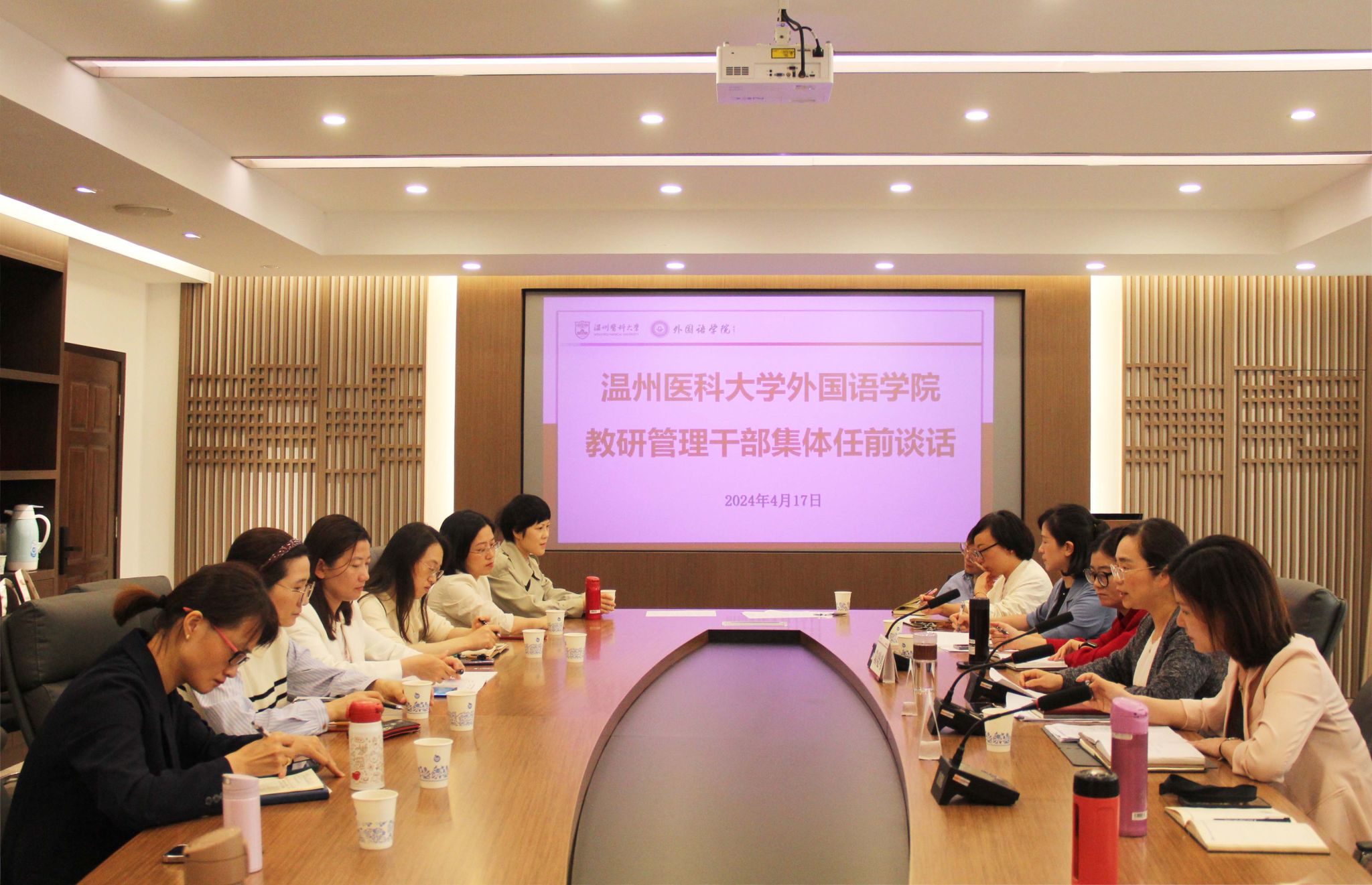 在7B104会议室召开教研管理干部集体任前谈话会。学院党委书记刘洁主持会议,党委委员和新任教研管理干部参会。