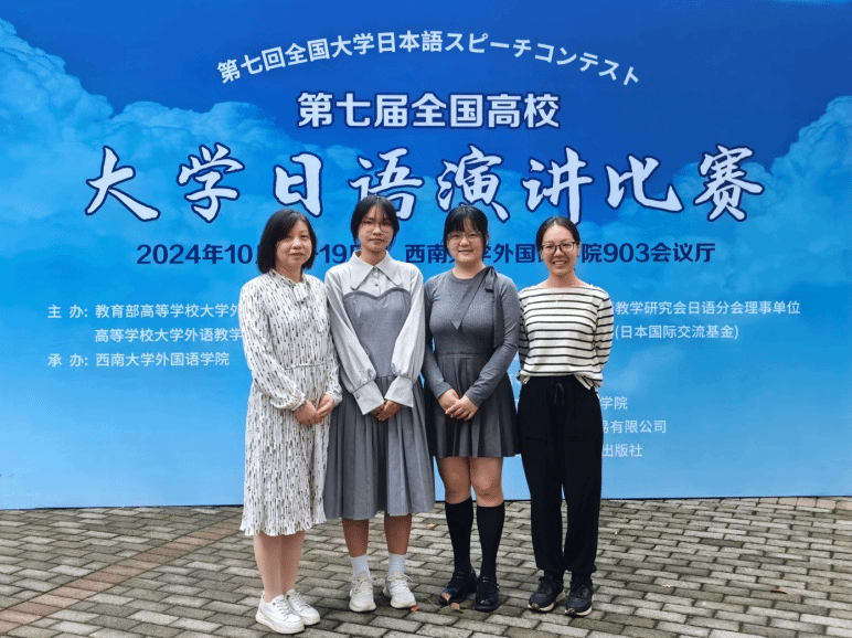10月19日,第七届全国高校大学日语演讲比赛在西南大学圆满落幕。来自仁济学院的薛舒曼(李嫱和董杰老师指导)和口腔医学院的张奕欣(王芳和余斌娴老师指导)分别斩获全国一等奖和全国二等奖的优异成绩!