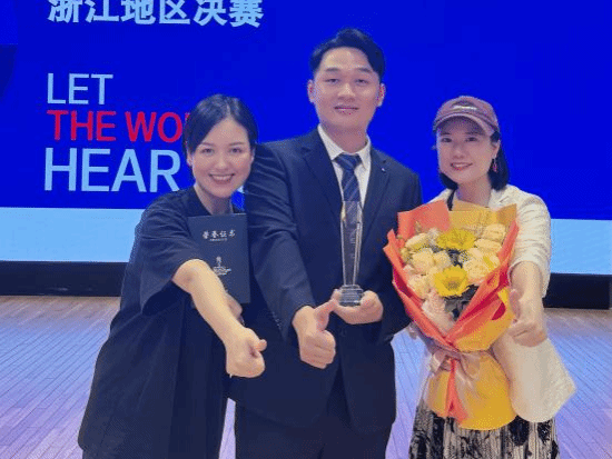 教师诸葛文婵和陈亦挺指导的学生王浩天在这场汇聚全省英语演讲高手的精彩对决中,凭借卓越实力,在激烈角逐中脱颖而出,荣膺省赛冠军,成功晋级全国总决赛。