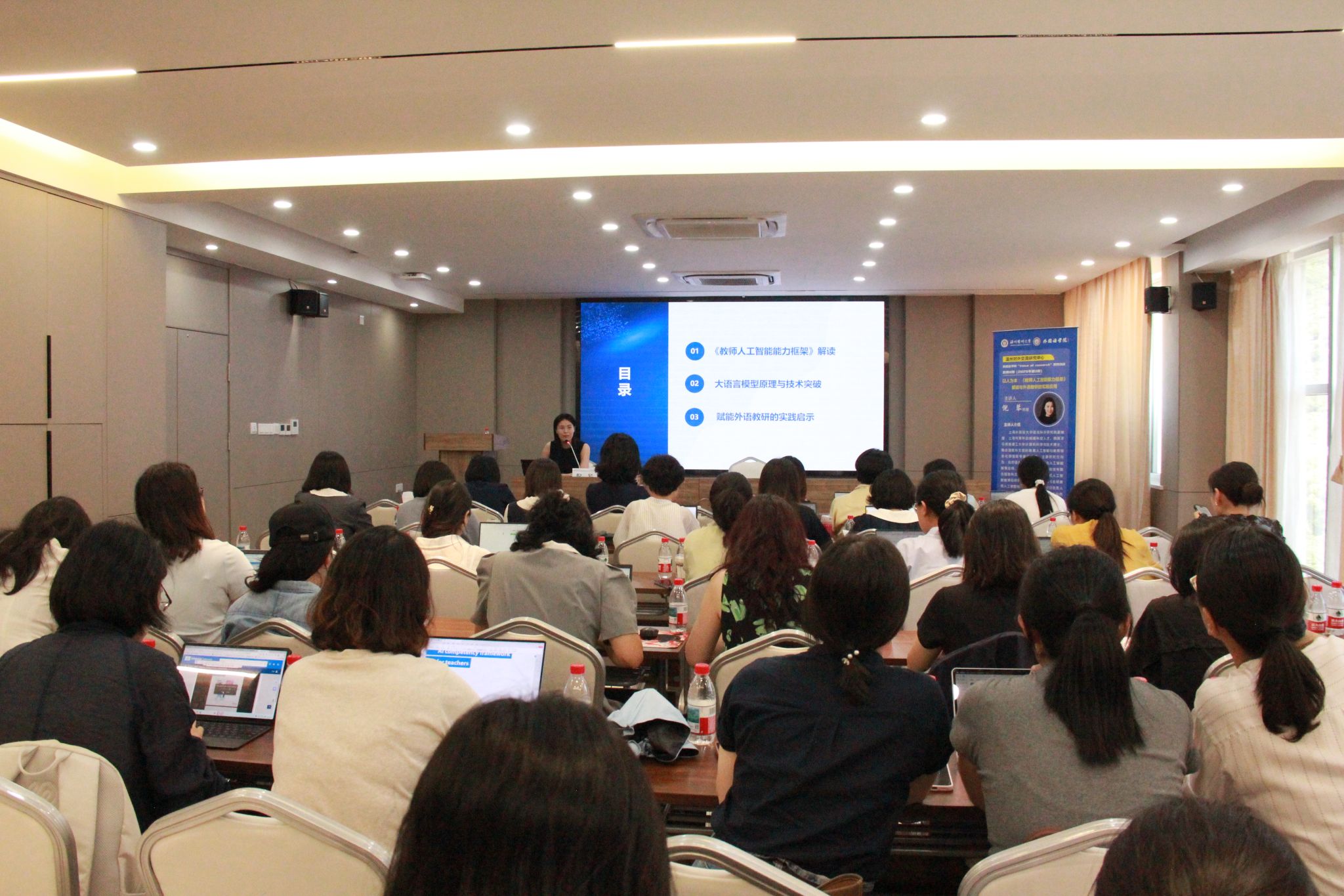 6月20日下午,倪琴以《以人为本:〈教师人工智能能力框架〉解读与外语教研的实践应用》为题讲述了人工智能技术快速发展的时代背景下教师角色的演变与教师人工智能素养的培养。她在解读联合国教科文组织《教师人工智能能力框架》的基础上阐释大语言模型的技术原理,并介绍目前国内主流的生成式人工智能教育工具。最后以Deepseek应用于外语教研为例,探讨大语言模型技术在外语教学科研的实际应用案例,为外语教研的创新发展提供启示和实践参考。