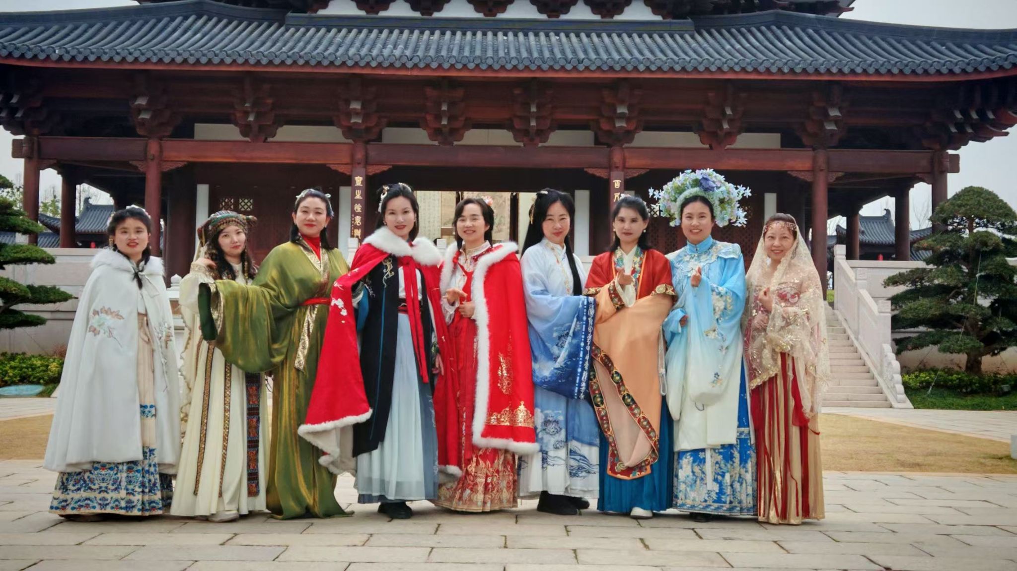 江心西园的古建筑在灰蒙蒙的天色下更显古朴典雅,别有一番韵味。换上精美汉服的女教职工们,仿佛穿越时空,化身成为古代仕女,在亭台楼阁间漫步,尽情展现着东方女性的古典美。专业的摄影团队用镜头记录下她们最美的瞬间,一张张精美的汉服写真,定格了她们的自信与优雅,也为她们留下了珍贵的节日回忆。阴天的光线柔和,反而为照片增添了几分朦胧的美感,大家纷纷赞叹摄影师的高超技艺。