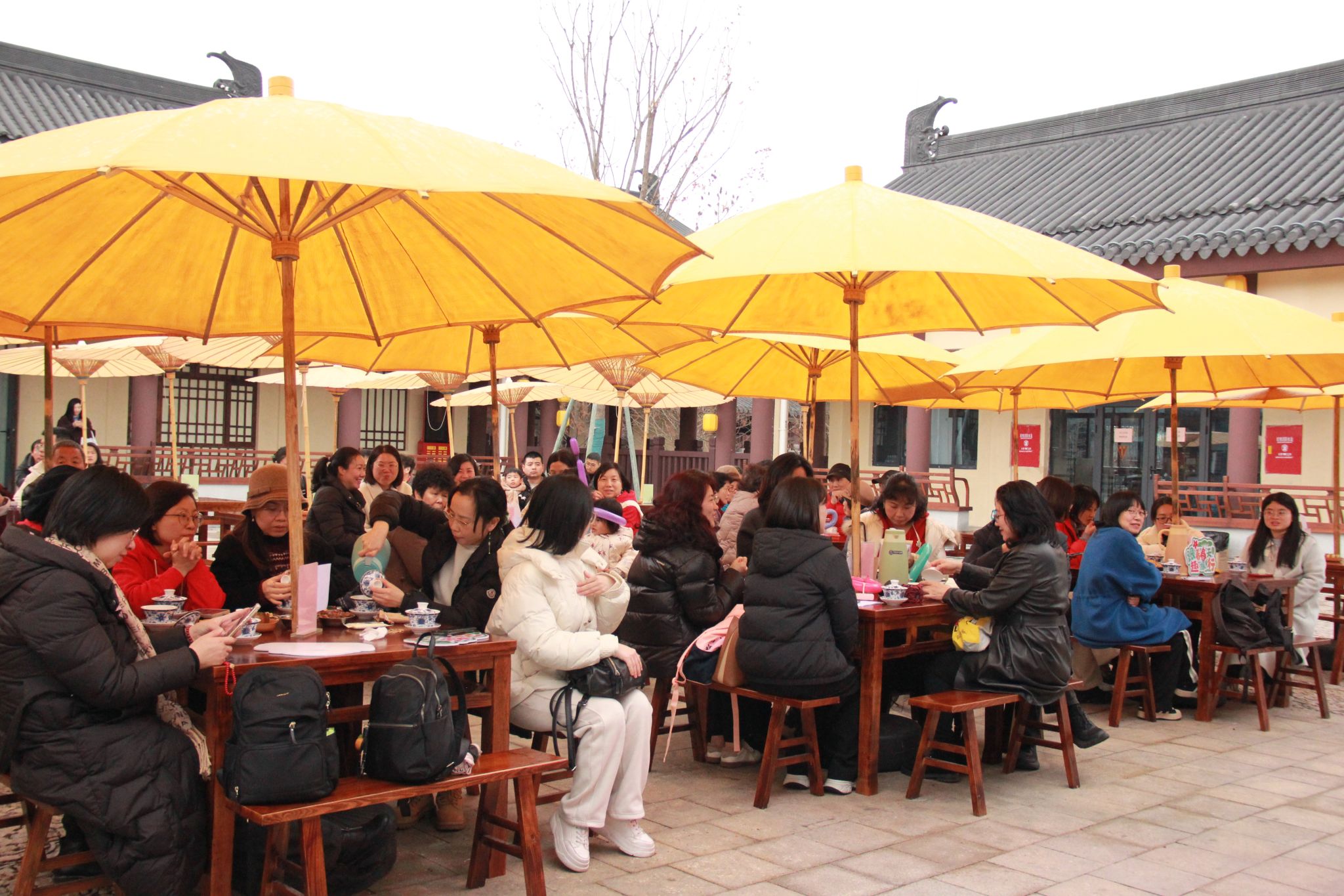 当日下午,活动在江心西园宋街拉开帷幕。学院女教职工们围坐在一起,一边品味着茶香,一边畅聊工作与生活,分享彼此的故事和感悟。茶香与笑语交织,现场气氛温馨而融洽。